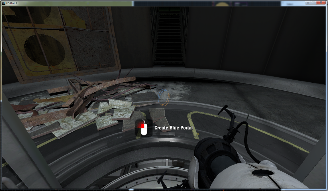 The lighting isn't working properly, and the onscreen tip to use the mouse button to fire the portal won't go away.