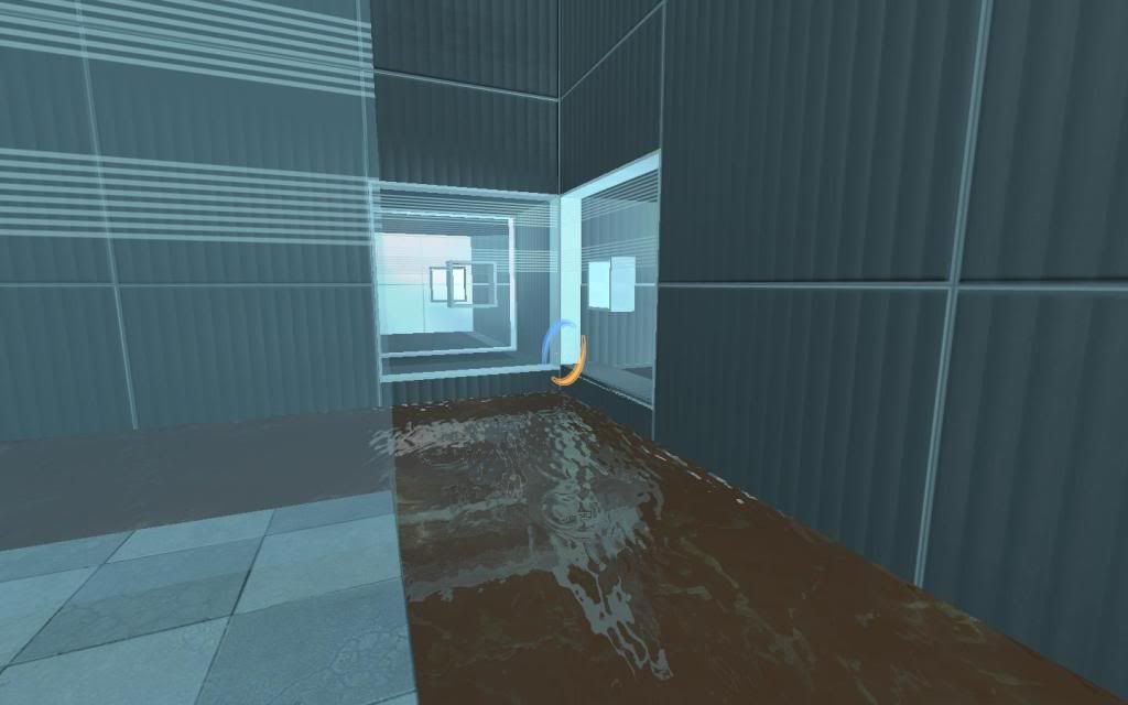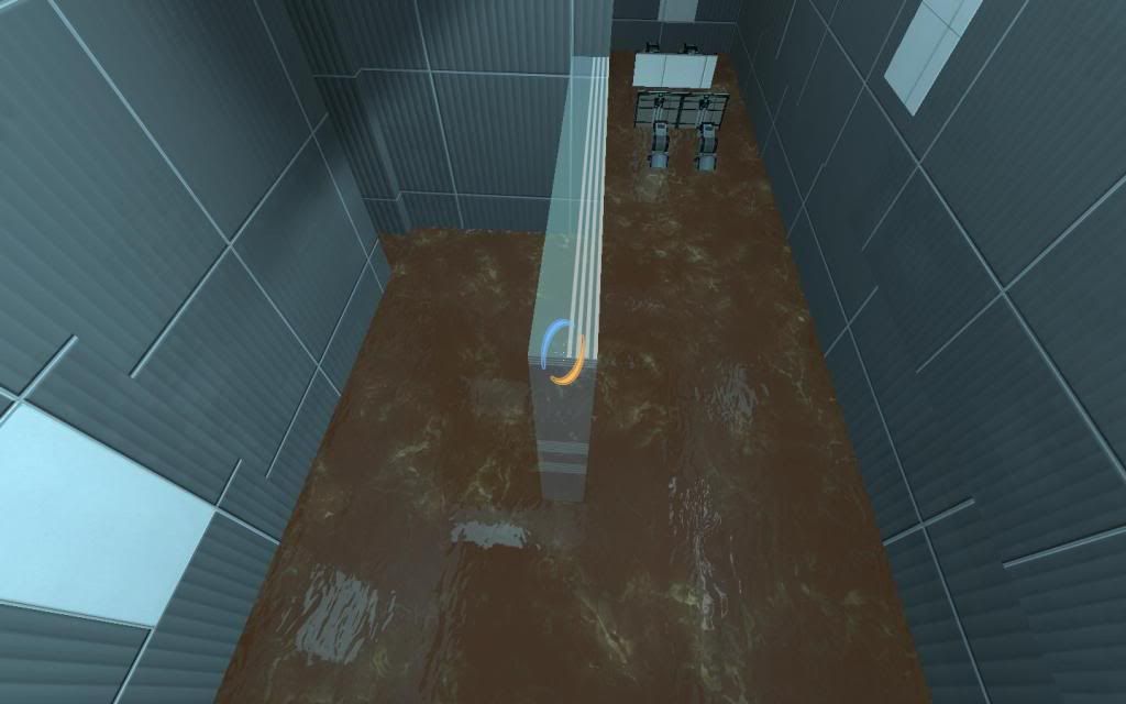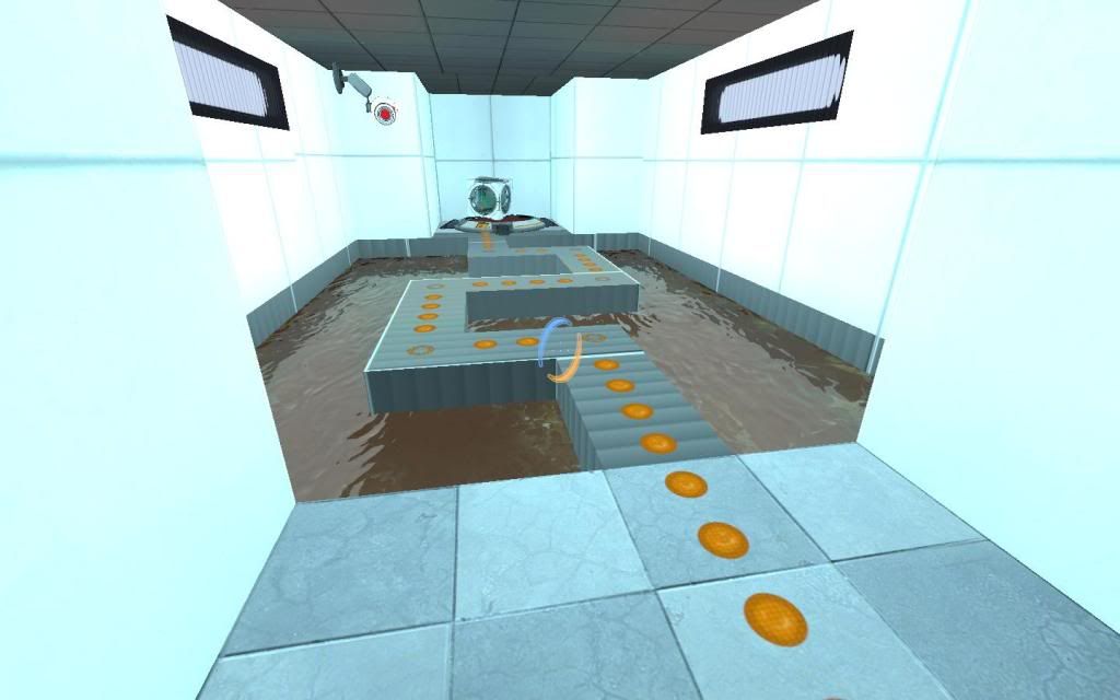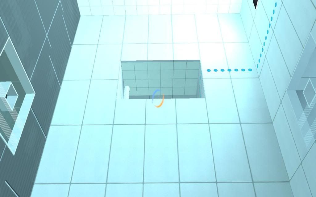- These narrow white surfaces are difficult to portal to, centering the shot to perfection. See if you can guide the aiming:
